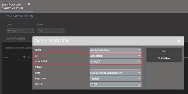 Gerade bei temporären Hotelschließungen oder bei reduziertem Betrieb kann es eine betriebliche Erleichterung sein, den Tagesabschluss automatisch als Task ablaufen zu lassen.