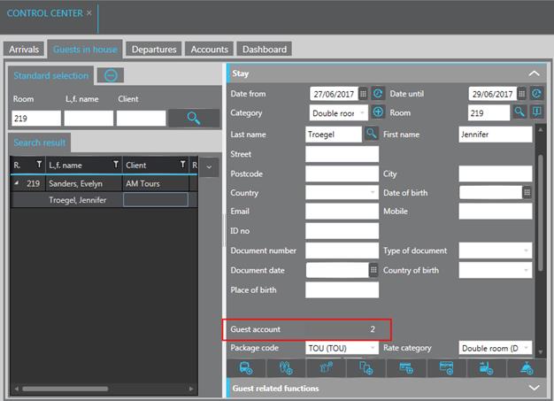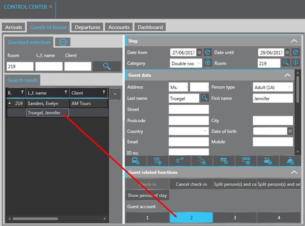 Ø Highlight the guest in the listbox in the control center or on the rooming list.