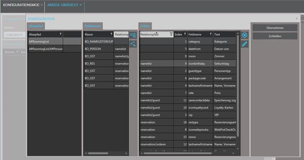 In diesem Tab werden die BOs eines markierten Aliaspfades aufgeführt, die Felder für diese Listbox stellen.