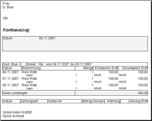 Abbildung 87: Gastkonto mit täglicher Verbuchung des Tagessatzes