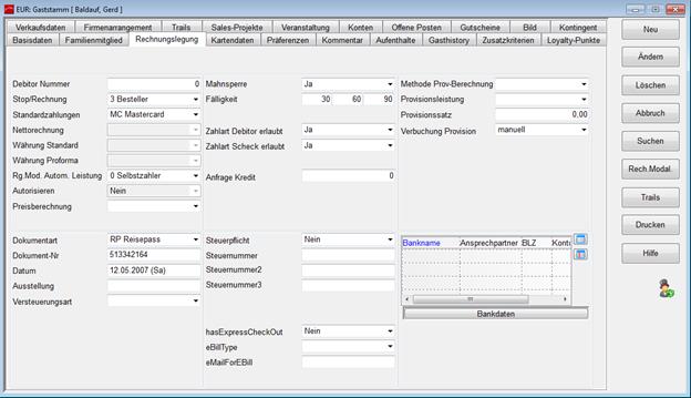 Unter diesem Tab können Sie Ausweis- oder Passdaten von Gästen speichern. Diese sind ggf. für die Polizeiliste oder andere Meldelisten erforderlich.