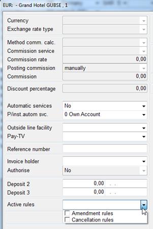 To prevent the rules coming into effect on a certain reservation, press the button additional information and define the rules to be applied/not to be applied in the field active rules.